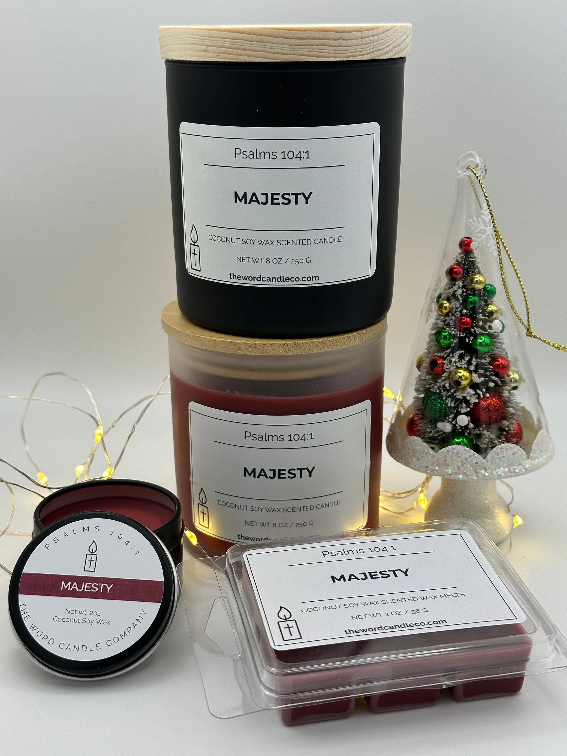 Radiant and full of praise, our Christmas Candle in rich burgundy captures the heart of the season — a time to bless the Lord with gratitude and joy. Inspired by Psalm 104:1 — “Bless the Lord, O my soul. O Lord my God, You are very great.” — this candle reflects the majesty and warmth of God’s presence. The fragrance opens with a fruity, spicy bouquet of cinnamon, clove, fir needle, ginger root, and pine, resting on a comforting sweet-apple base. Hand-poured with care, it glows like a quiet act of worship — a reminder that every light we kindle is a reflection of His greatness and glory.