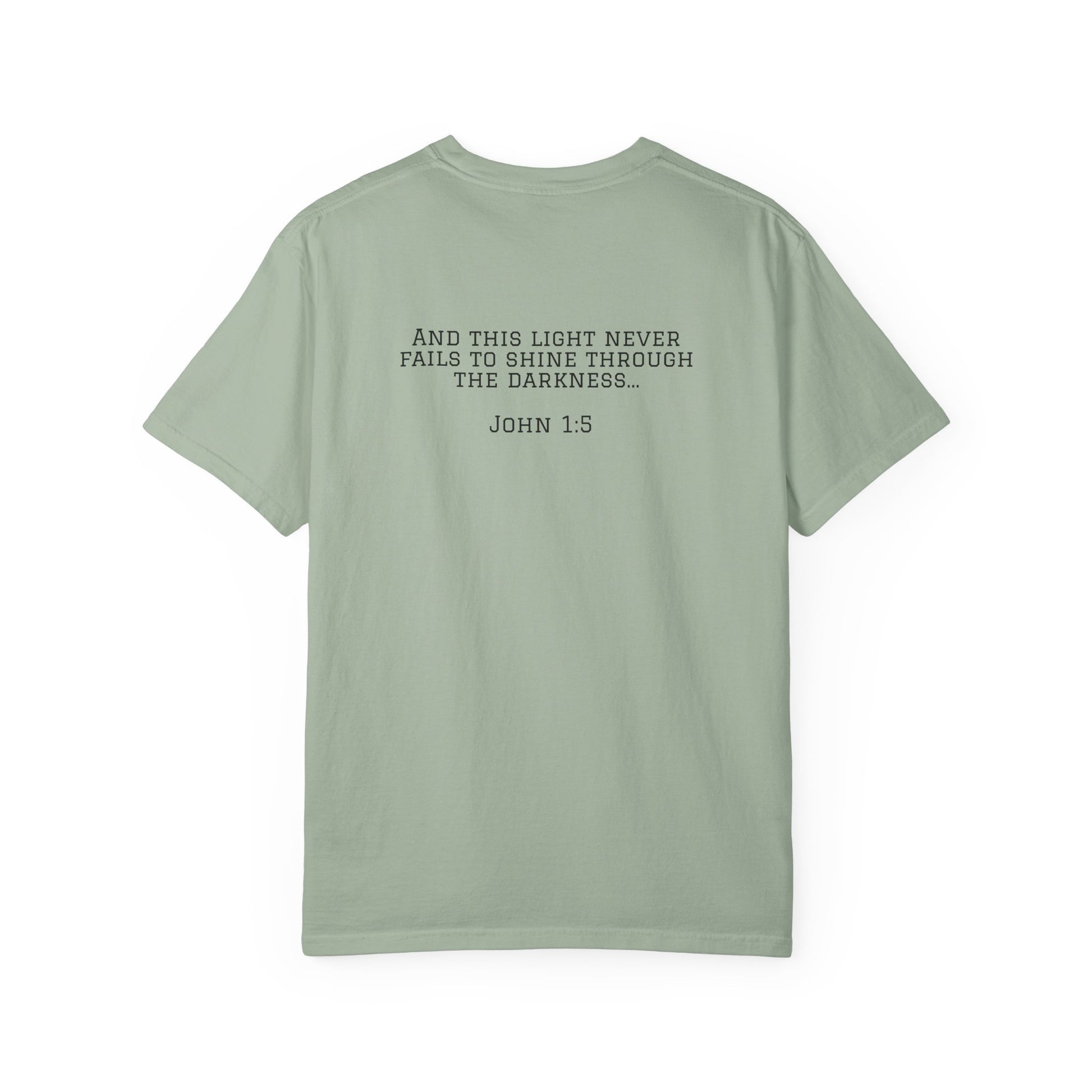 Our "Be The Light" slogan and logo are on the front, and John 1:5 on the back. Comfort Colors introduces the “Comfort Colors 1717” garment-dyed t-shirt; a fully customizable tee made with 100% ring-spun cotton. The soft-washed, garment-dyed fabric brings extra coziness to your wardrobe while the relaxed fit makes it an excellent daily choice. The double-needle stitching throughout the tee makes it highly durable, while the lack of side seams helps the shirt retain its tubular shape.