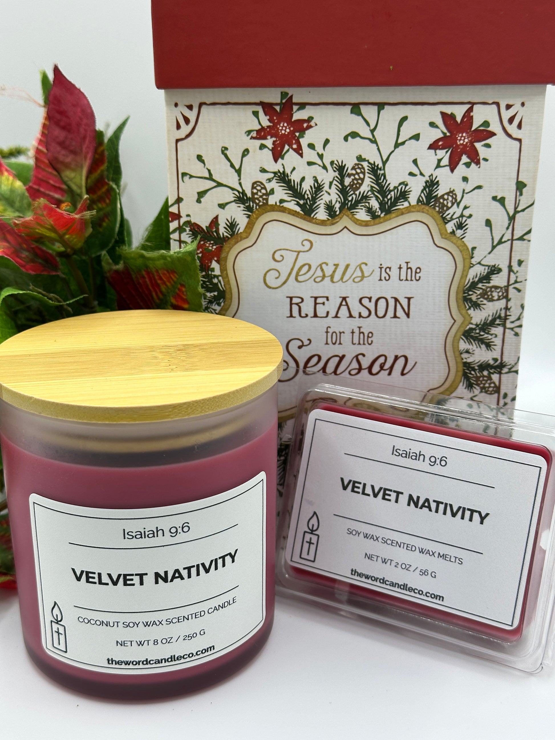 Rich, regal, and reverent — Velvet Nativity is the crown jewel of the Christmas Collection. Poured in a deep burgundy-purple hue, this candle embodies the majesty of the season and the wonder of Christ’s birth.